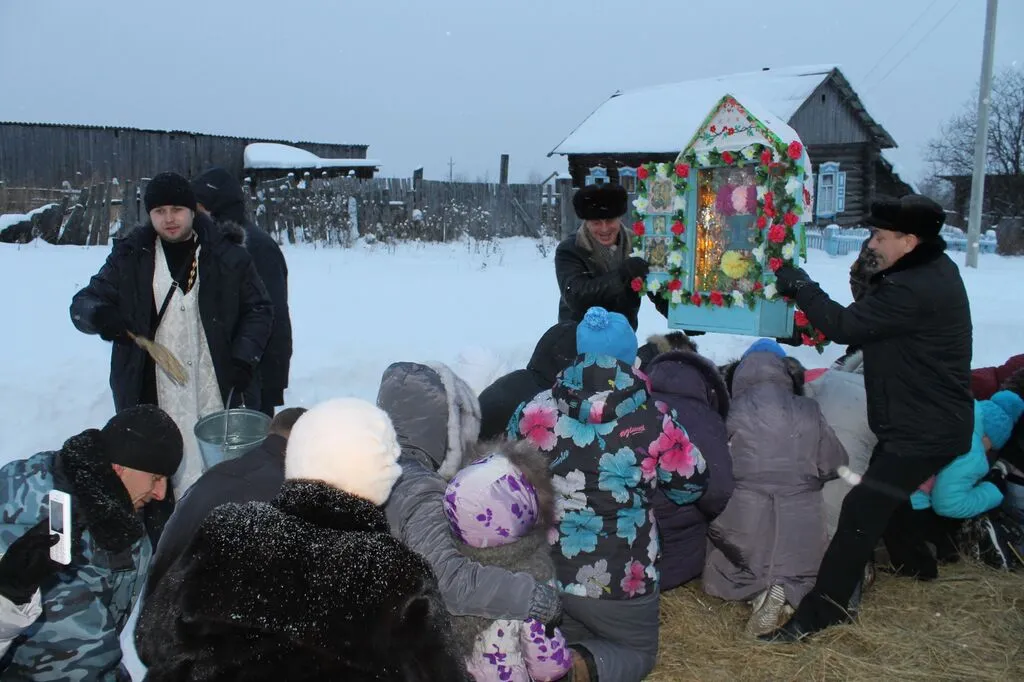По сложившейся традиции икона в течение года хранится в доме одного из местных жителей. В этот период дом превращается в своеобразный сакральный центр поселения, его двери всегда открыты для желающих поклониться иконе. На Рождество, утром 7 января совершается перенос иконы в другой дом, чему предшествует подготовка к выносу. По воспоминаниям очевидцев, раньше перед переносом иконы по деревне ходили дети и звали гостей со словами: «приходите на Свечу к Ивану богачу» (имя менялось в зависимости от того, у кого будет гостить святыня) [Крамор, 2003, с. 97]. Дом, в котором икона простояла год, гости начинают посещать в сочельник, 6 января. Каждый человек кланяется иконе, молится перед ней и зажигает возле нее свечу. Обычно принято класть около иконы денежные пожертвования, которые остаются у хозяев дома. Эти дары сравнивают с пожертвованиями, которые ранее люди давали церковным старостам на нужды храма. В частности, на них хозяева дома должны были покупать свечи и угощать гостей [Крамор, 2003, с. 97]. По воспоминаниям местных жителей, раньше в качестве подарков чаще приносили отрезы льняной ткани, рушники или чесаный лён [Новикова, 2022, с. 3]. Хозяева дома накрывают стол и угощают гостей постными блюдами. Во время трапезы пели тропари или читали молитвы.